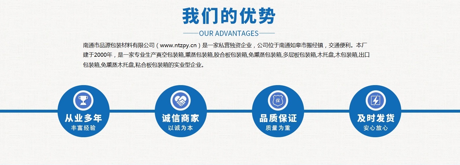 南通市品源包裝材料有限公司(www.chuchenqish.com)是一家私營(yíng)獨(dú)資企業(yè),公司位于南通如皋市搬經(jīng)鎮(zhèn),交通便利。本廠(chǎng)建于2000年,是一家專(zhuān)業(yè)生產(chǎn)真空包裝箱,熏蒸包裝箱,膠合板包裝箱,免熏蒸包裝箱,多層板包裝箱,木托盤(pán),木包裝箱,出口包裝箱,免熏蒸木托盤(pán),粘合板包裝箱的實(shí)業(yè)型企業(yè)。